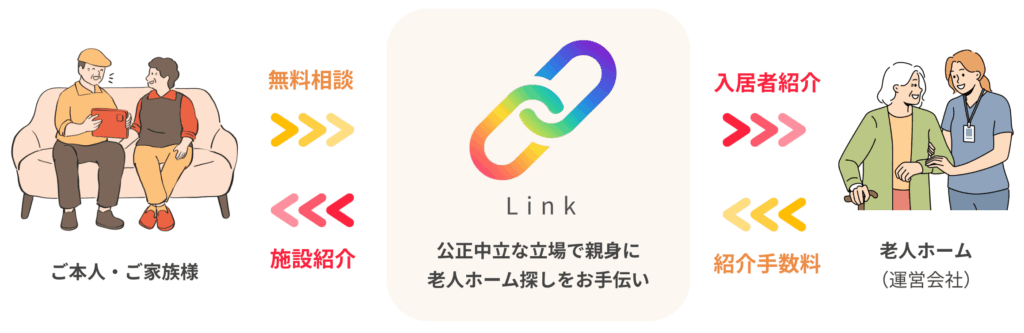 ご入居が決まった場合、リンクケアではホーム側から紹介料をいただいております。